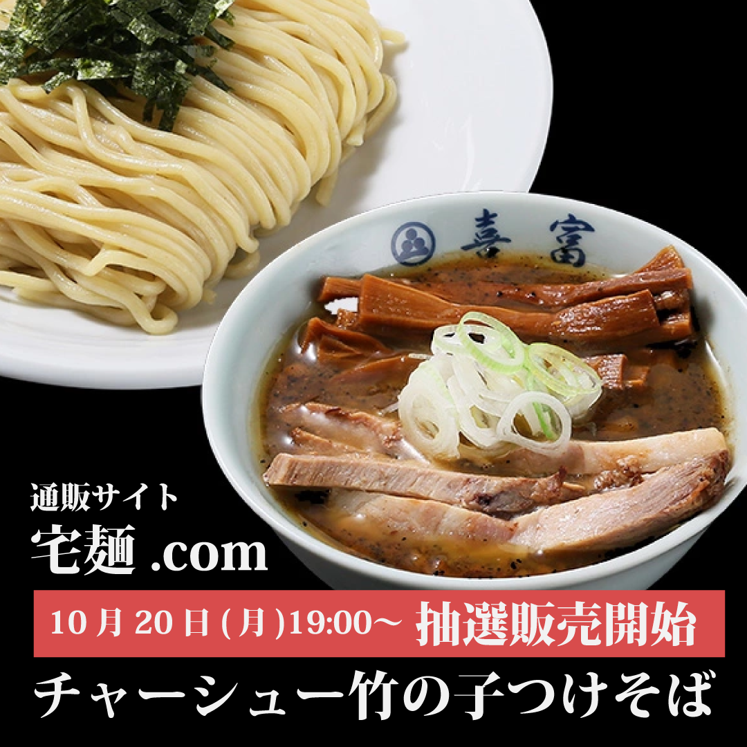 10月20日(月)19:00より「チャーシュー竹の子つけそば」 抽選販売を開始いたします。